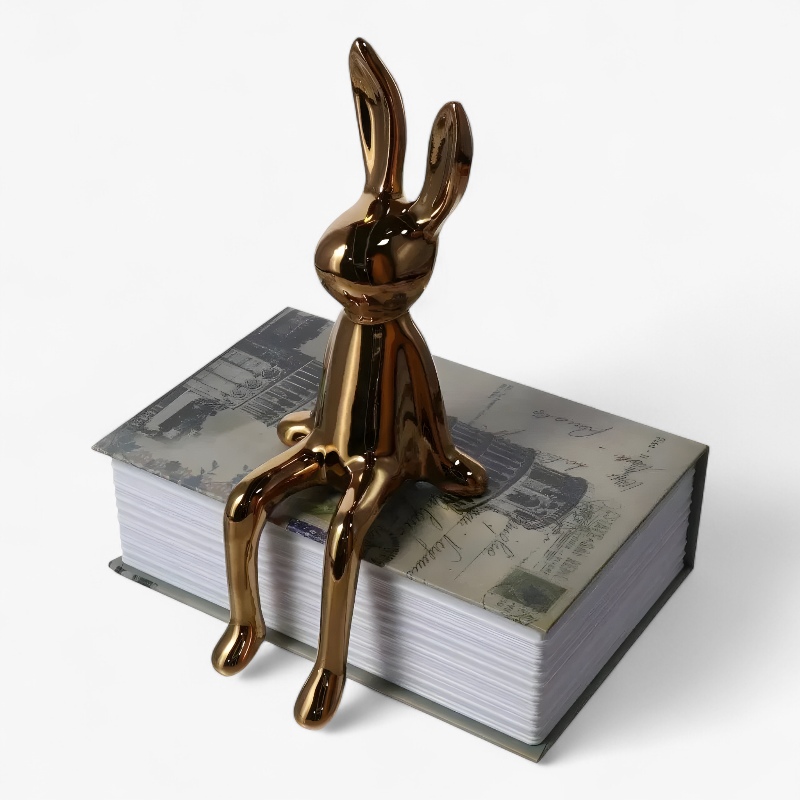 Denne elegante kaninfigur giver et moderne og legende udtryk til indretningen. Den skulpturelle form skaber et stilrent blikfang, uanset om den placeres på en hylde, reol eller kommode. Kombinationen af glat overflade og enkelt design gør figuren til et tidløst element, der passer ind i enhver boligstil. En dekorativ detalje, der bringer balance og personlighed til rummet.